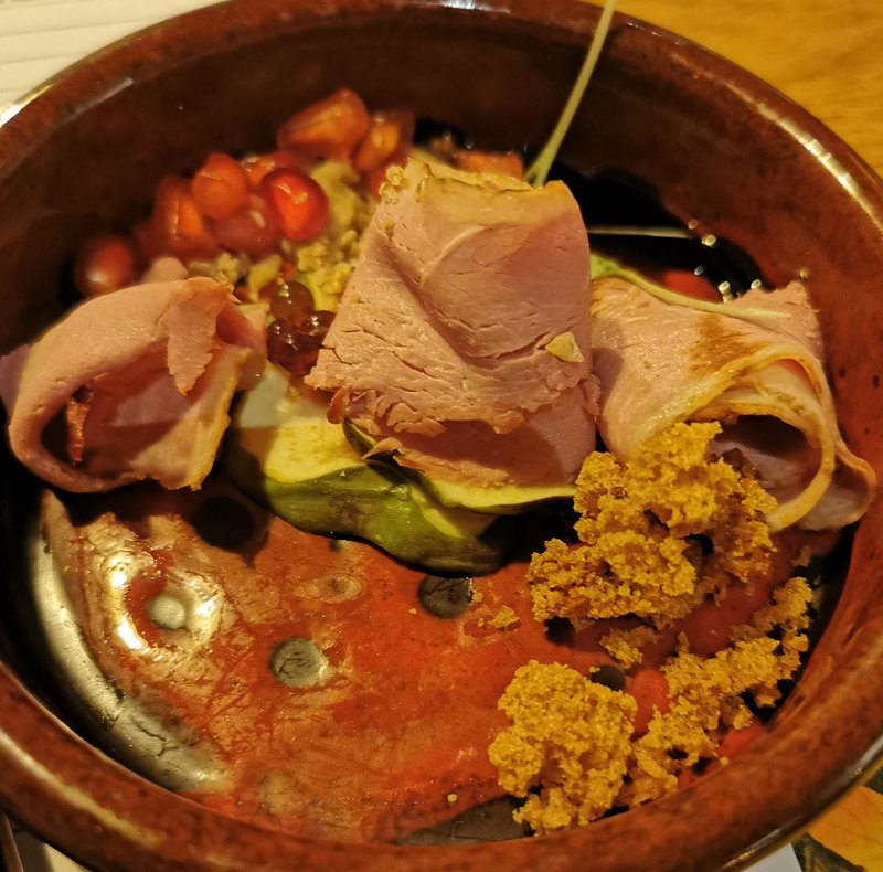 - Gerookte eendenborstfilet met granaatappel, peperkoek, kastanje en balsamico – Texels Bock
