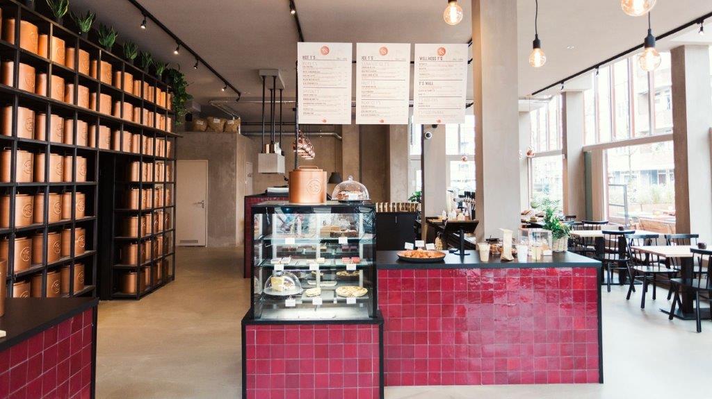 Sufian Alariachi en Nazish Saleem willen met T’s, in de Amsterdamse wijk de Baarsjes, het imago van thee veranderen. Dat de theewereld zeer uitgebreid is, wordt hier duidelijk: tegen de muur staan bijna honderd koperen blikken met verschillende theesoorten en zelfgemaakte blends en de menukaart gaat van verse ijsthee van de tap tot de Very Berry Mojito, Iced Macho Matcha Latte (zie foto) en zelfs kaasthee (!). Deze laatste is populair in Azië en is een vers gebrouwen groene jasmijnthee of zwarte thee met een laag kaas erop. Daarnaast helpt T’s horecazaken, waaronder Mama Kelly in Amsterdam, bij het neerzetten van een high-teaconcept.