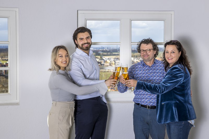 “Wij hopen dat in mei onze eerste gasten in het educatie belevingscentrum voor streekproducten kennis kunnen maken met de lekkere en duurzame bieren van o.a Gulpener!” Deze samenwerking onder de noemer “eten en drinken van zover je kunt kijken” is bekrachtigd door Jan-Paul Rutten met een glas FRISCH en een mooi glas Gulpener Chateau Neubourg in het bijzijn van Tom Bosman, Nico Eurelings, Lydia Köppen, Tygo Vranken en André en Anne-Marie Köppen.