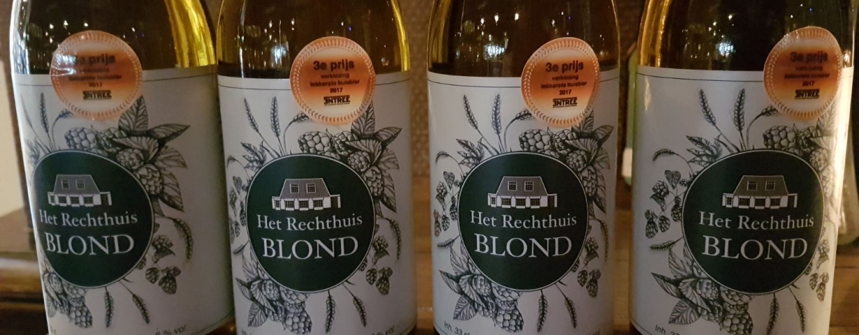 De etiketten van Het Rechthuis Blond, derde in de categorie licht (tot 6%) tijdens de onlangs gehouden Huisbier van het Jaar verkiezing van Entree, hebben een zegel op het etiket met de vermelding van deze mooie prestatie.