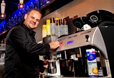De verse opschuimmelk van Friesche Vlag is in samenwerking met barista’s ontwikkeld, voor de beste smaak en optimale schuimlaag. De juiste balans van eiwitten en vetten maakt dat de melk romig is en niet inzakt. “Wij zijn er heel enthousiast over”, laat Koopman weten. “Het schuim blijft echt mooi en de smaak sluit perfect aan bij de espressobonen die we gebruiken.” Ook de gasten zijn blij met de Friesche Vlag opschuimmelk in de koffie die ze zelf kunnen pakken. “We hebben hier natuurlijk te maken met heel veel vaste gasten: de topschaatsers trainen hier dagelijks. En daar zitten hele kritische koffiedrinkers bij hoor”, lacht Koopman. “Kjeld Nuis bijvoorbeeld, dat is een echte koffiekenner en zijn latte art is beter dan die van ons. Hij komt hier bijna dagelijks terug voor een kop koffie. Ook uit de automaat. Dat zegt genoeg, toch?”