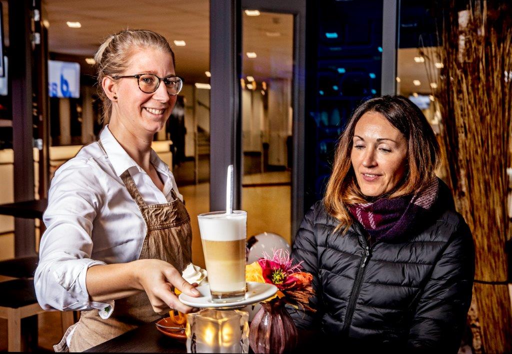 Topsporters en plezierschaatsers kunnen voor of na hun rondjes over het ijs terecht bij Brasserie de Butenbocht in Thialf. Voor een goede kop koffie met lekker en stevig schuim bijvoorbeeld. Bekijk meer foto's (gemaakt door Pim Ras) onder dit bericht.