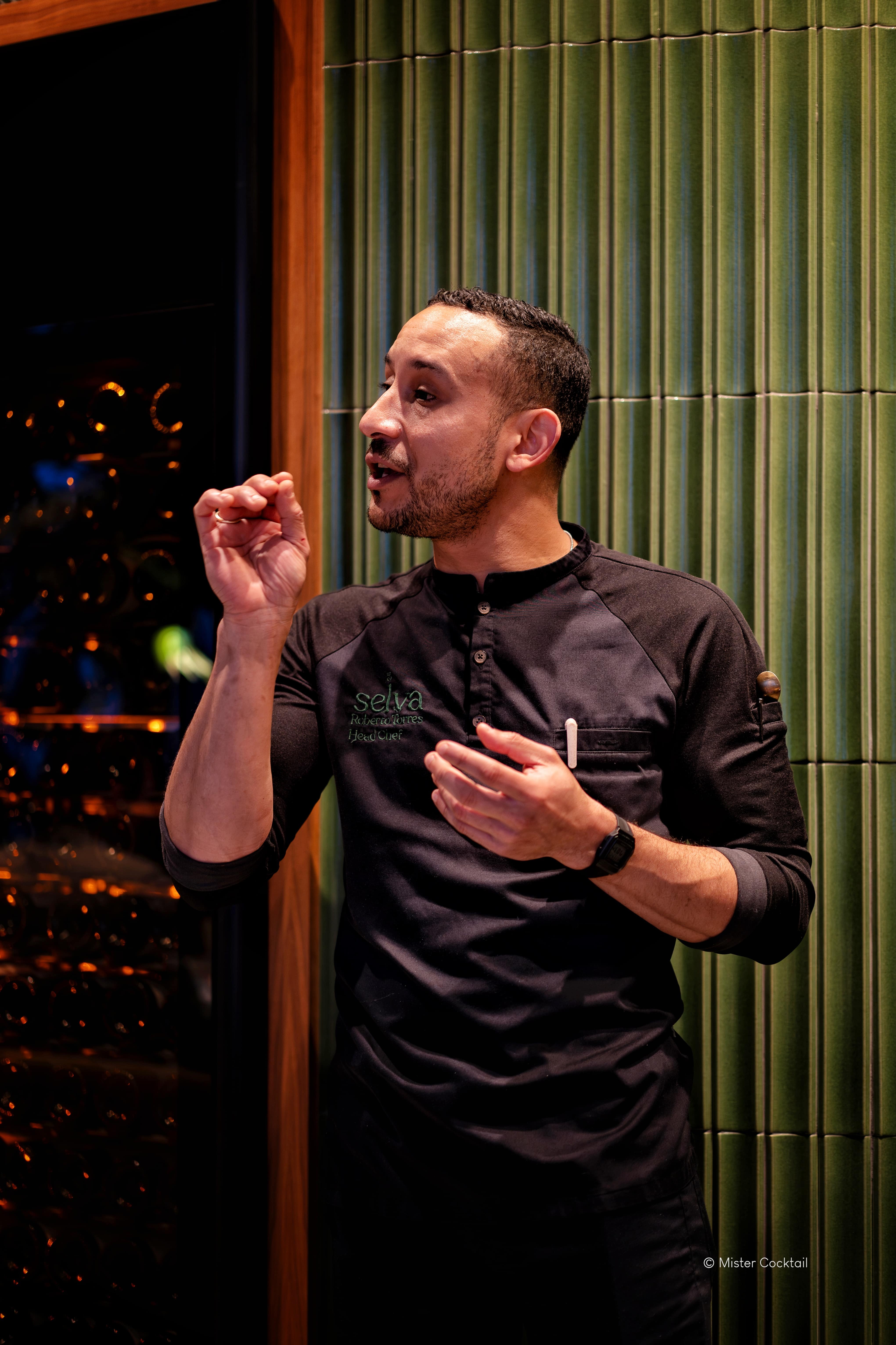Maar eerst ook even aandacht voor het eten, onderbreekt Roberto Torres hem lachend. De head chef van Selva opent het diner met oesters – de dressing is met rum – brood van yucca en al snel volgen er twee soorten ceviche; een van portobello en een van zeebaars. Deze worden begeleid met een airmail-cocktail, een klassieker op basis van champagne, honing en rum – in dit geval de Abuelo 7.