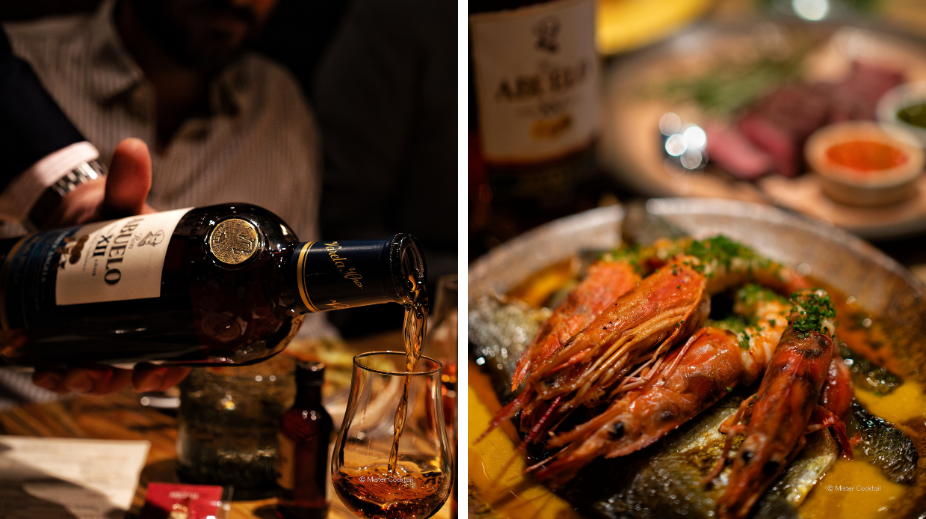 Restaurant Selva en de bijbehorende cocktailbar Sonora hebben diverse rumcocktails op de kaart, vertelt head bartender Merkin tussen de gangen door. Bij de hoofdgerechten - gefileerde zeebaars, in rum geflambeerde gamba’s en gegrilde picanha-steak – serveert hij de Peras al Vino Cocktail met Abuelo 12. Het is de favoriete rum van brand ambassador Srokowski, die het moment aangrijpt om deze rum puur in proefglaasjes rond te laten gaan. “Onze bestseller, een blend van rums van 12 tot 46 jaar oud, gefinisht op Amerikaanse eikenhouten vaten. Ons rijpingsproces is erg speciaal. We hebben een voorraad oude rums, vanaf 1978. We gebruiken deze oude reserves in de blends van al onze rums.”
