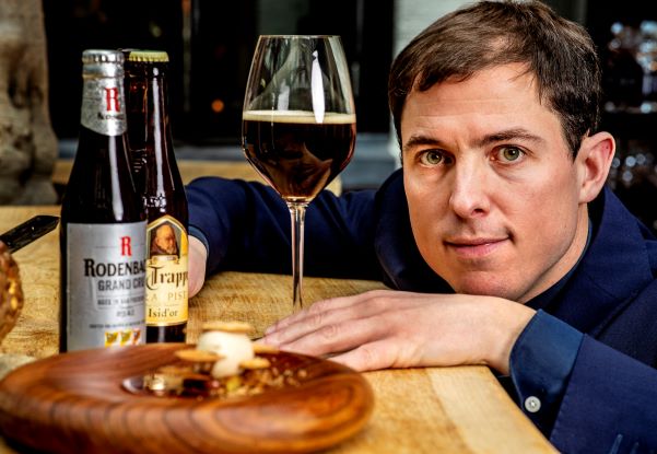 Sommelier Sabas Joosten is een wijnkenner met een hart voor bier. Hij ziet geen tegenstelling. Steeds vaker kiezen gasten voor wijn én bier bij hun menu. Zijn passie is hetzelfde: bij driesterrengerechten een tongstrelende combinatie vinden.