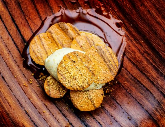 Ook bij een hartig dessert geeft Joosten graag een bieradvies. “Eendelever, brioche, cornichons en saus van Olde Remeker, die mooie kaas van Jerseykoeien uit Lunteren, is een hartig dessert dat we maken. Ik combineer dat graag met Westmalle Tripel. Tripel is een mooie rijke volle stijl, als antwoord op de rijkdom van de lever en de saus .
