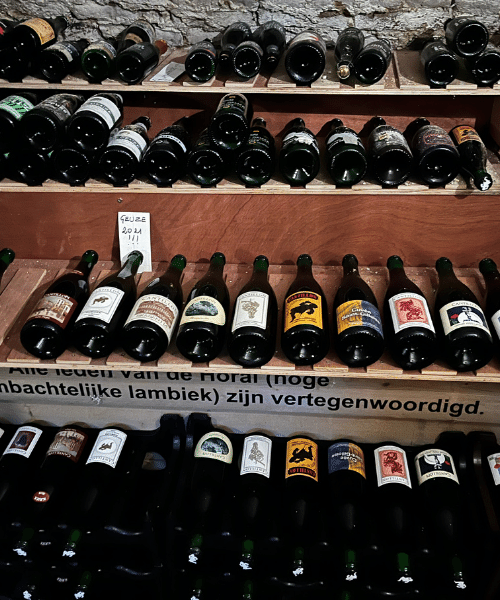 De sfeer heeft iets weg van een oude Belgische bistro met een uitgang naar de binnenplaats. Daar is een grote kelder waar een schat aan vintage bier ligt. “Mijn vader verzamelde altijd al oude bieren en vandaaruit heb ik het verder uitgebouwd”, zegt Raf. “Je vindt er veel unieke exemplaren, bijvoorbeeld alle jaargangen Orval.” Hij toont trots de oudste fles uit 1966 (zie onderstaande foto). Een deel van de bijzondere biercollectie staat ook op de kaart, maar wel achter slot en grendel. De sleutel van dat deel van de bierkaart krijg je alleen als Raf denkt dat je de waarde kunt inschatten van de bieren. De prijzen op de bierkaart zijn laag en vaak rond de inkoopprijs. “Ik wil niet verdienen op de bieren. De biersprankel in je ogen geeft toegang tot de bierkaart!”