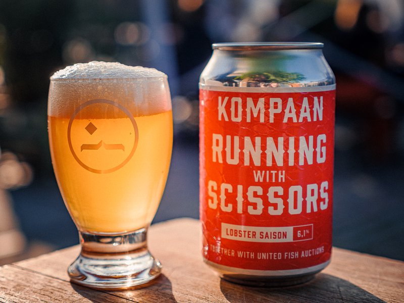 “Running with Scissors! Dit is onze splinternieuwe Lobster Saison (6,1%), waaraan twintig verse kreeften tijdens het brouwen werden toegevoegd. We zijn ze zelf gaan halen in Zeeland; een unieke samenwerking met United Fish Auctions. Het resultaat: een droge saison, in balans, met een subtiele maar duidelijke kreeft/ schaaldiersmaak in de afdronk.