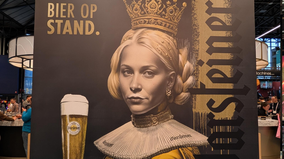 Warsteiner Benelux vroeg AI te verbeelden hoe Nederlanders tegen Warsteiner aankijken, met deze eyecatcher op Horecava als resultaat.