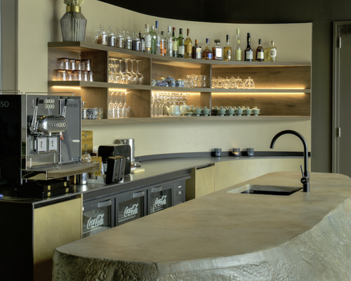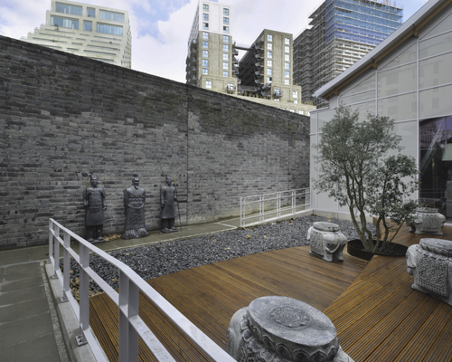 Het architectenbureau VAN AKEN is verantwoordelijk voor het bouwontwerp. Zo ook voor de twee metershoge stenen muren aan de weerszijden van het restaurant. De muren verwijzen naar de stad Nanjing en de stenen komen daar ook daadwerkelijk vandaan. En datzelfde geldt voor veel meubels en antieke stukken in het restaurant. Het interieur bevat zowel elementen uit het nieuwe China als uit het oude China: hier maak je kennis met de Chinese cultuur in alle facetten.