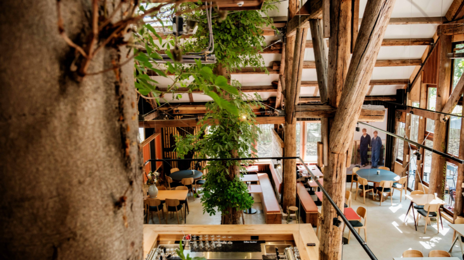 Eind april opende brasserie Polderfabriek in Leiderdorp. Een ruime zaak met terras dat grenst aan een voedselbos en fruitboomgaard. Bijzonder: gasten kunnen de toren van het gebouw beklimmen voor een weids uitzicht over dit deel van het Groene Hart. Guido Verschoor, mede-eigenaar van de Brasserie Groep (zes locaties): “Leren, genieten en proeven van de natuur. En natuurlijk vindt de gast de lokale producten die we in de brasserie serveren terug in de streekwinkel.”