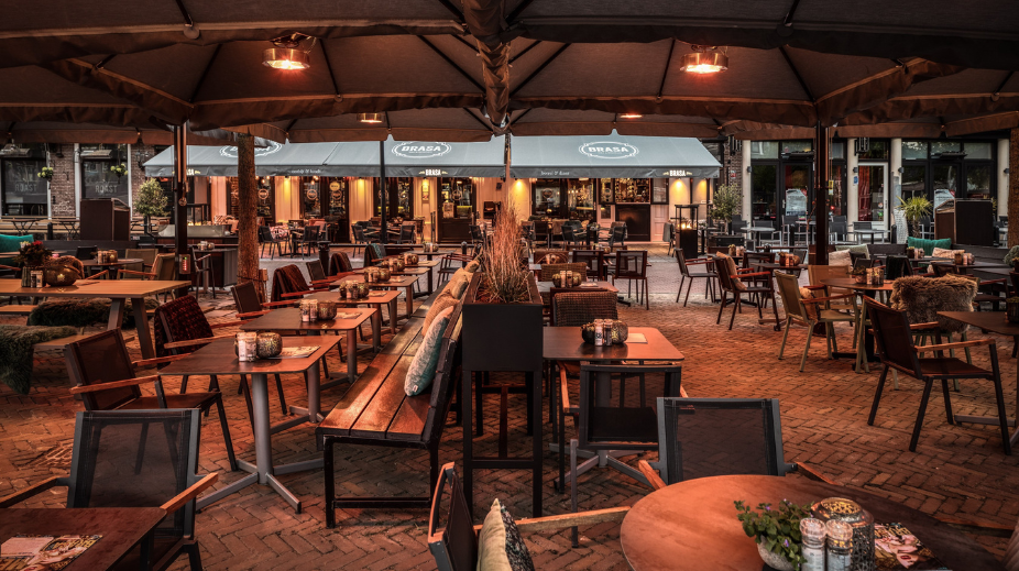 Restaurant BRASA in Purmerend heeft een jaarrond terras met 180 zitplekken buiten. Diverse grote parasols en terrasschermen rondom, maakt dat gasten hier heerlijk beschut zitten. Ook in de winter is het terras favoriet bij gasten, dankzij de heaters en in het kader van duurzaamheid verwarmde zittingen op de stoelen als het iets minder koud is. Het terras is dan aangekleed met vierkante, ronde en picknicktafels, plantenbakken, bont- en fleecedekens en sfeerlichten.