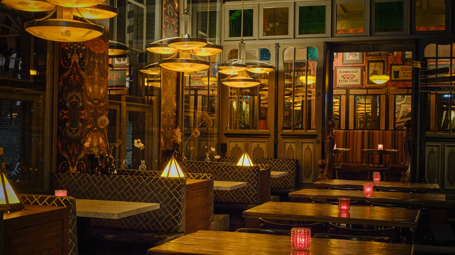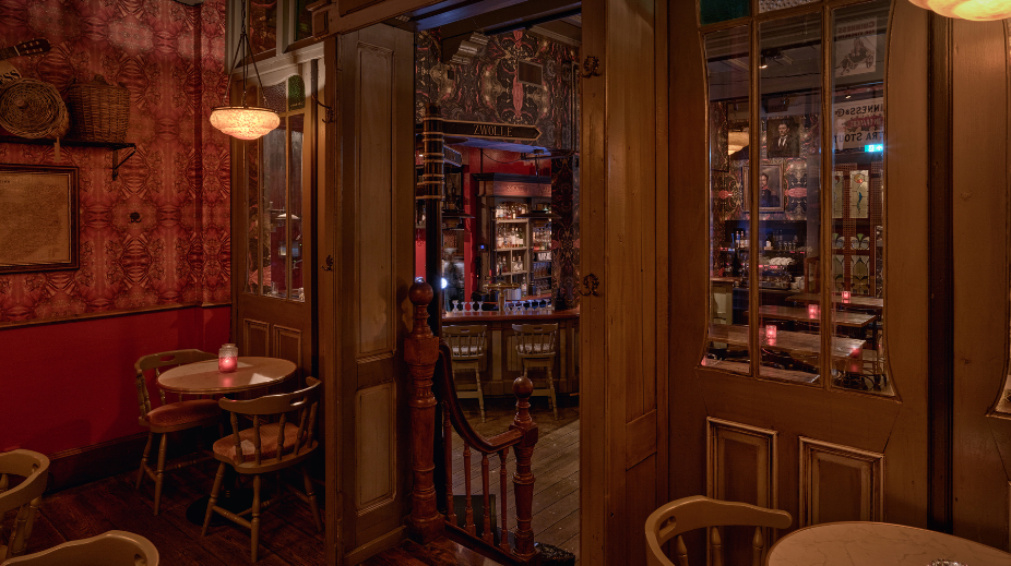 De extravagante en burleske invloeden, die designer Will Erens van Too Many Agencies overal in de wereld toepast in de meest uiteenlopende horecaconcepten, geven The Dublin House een internationale allure, dat schaalbaar is en op vele plekken in de wereld zou kunnen bestaan. Door onderdelen van het oude interieur slim te verwerken tot nieuwe bepalende elementen ontstaat een interieur dat uniek is. Hier kijk je je ogen uit!