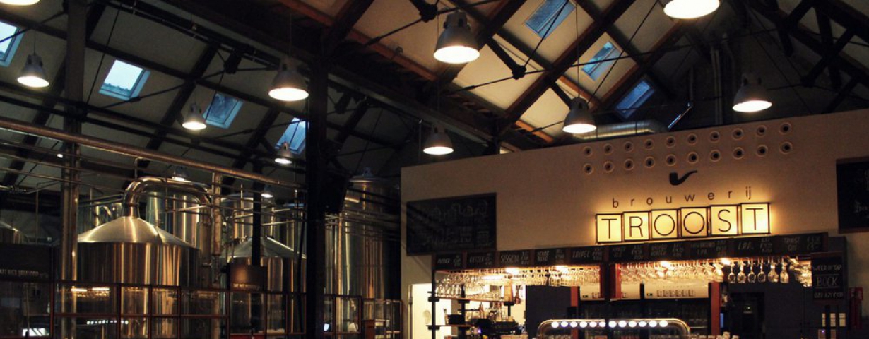 Oog voor de toekomst, dat is een belangrijk uitgangspunt bij Brouwerij Troost. Zo wordt het bier er biologisch gebrouwen, wordt zo min mogelijk water verspild, is zo’n tachtig procent van de gerechten op de menukaart vegetarisch of vegan en komt het vlees dat wél op de kaart staat van dieren die een goed leven hebben gehad. De brouwerij heeft drie locaties in de hoofdstad. Jason McAuliffe voert de scepter over Troost Westergas in het Westerpark. “Gasten komen hier natuurlijk voor een lekker biertje. Maar we serveren ook heerlijk en toegankelijk eten zoals burgers, fish and chips en taco’s. We zien vooral jonge, Amsterdamse gezinnen; in het weekend ook veel toeristen,” vertelt hij.