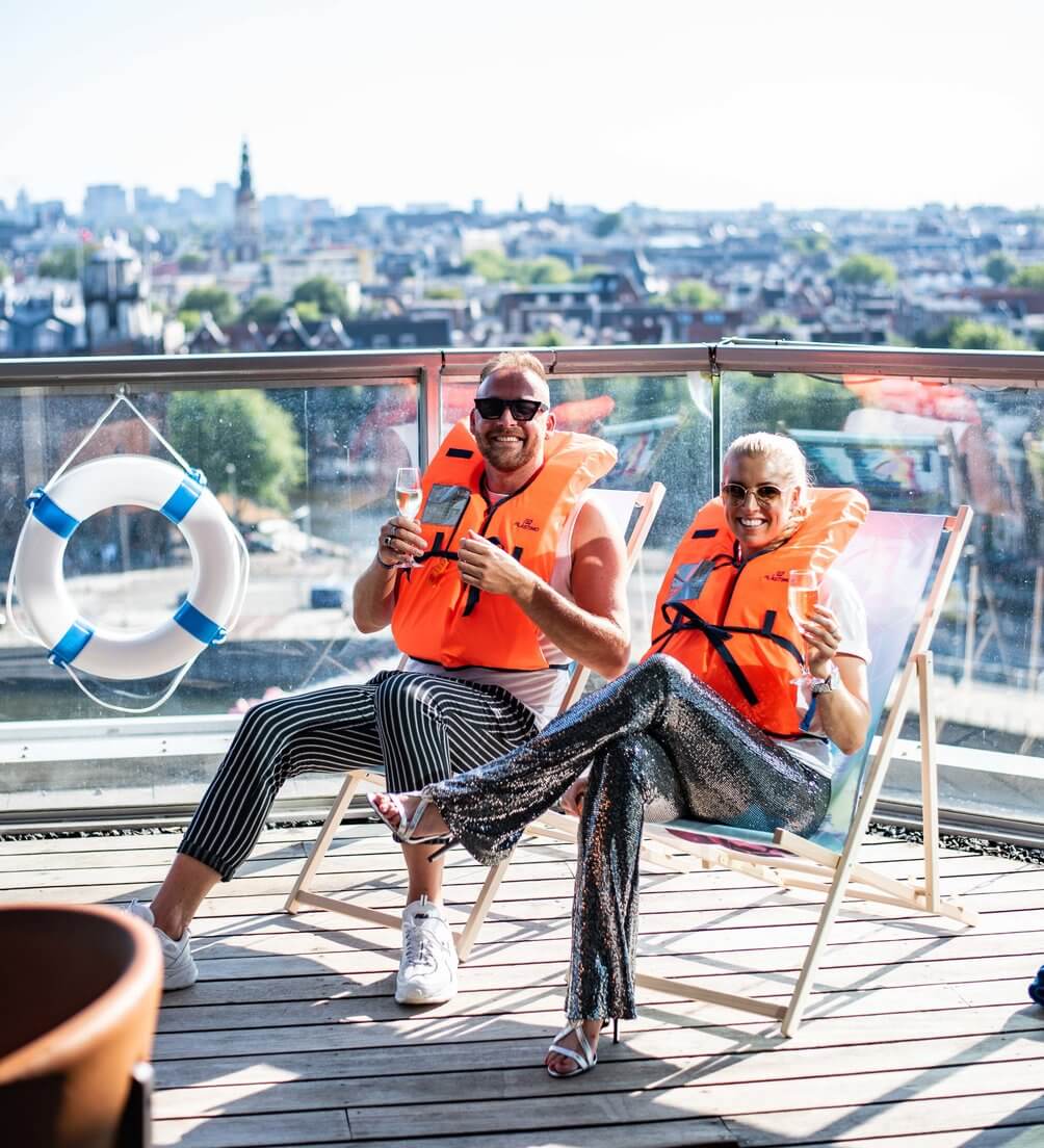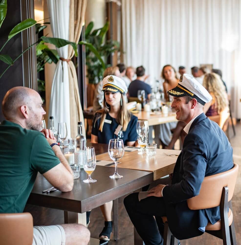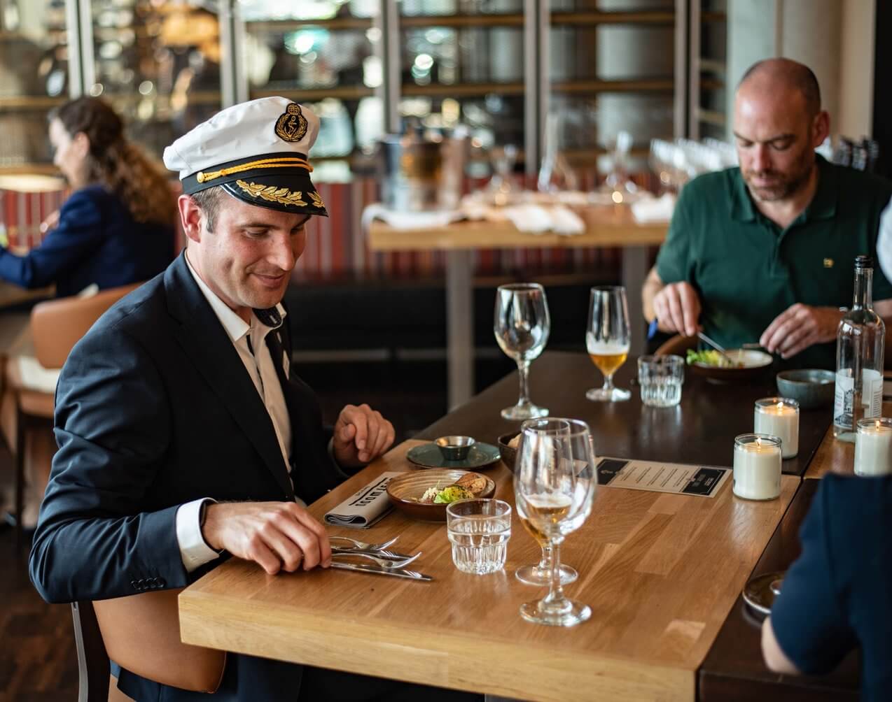 Met uitzicht over het IJ, kunnen zij genieten van een Captain's Cocktail in SkyLounge Amsterdam, waarna ze kunnen aanzitten aan een Captain's Dinner bij Eastwood Beer & Grill aan het Oosterdok. Bij de cruise is een overnachting inbegrepen, net als een uitgebreid ontbijt en een afsluitende koffie bij de Starbucks-vestiging van het hotel.