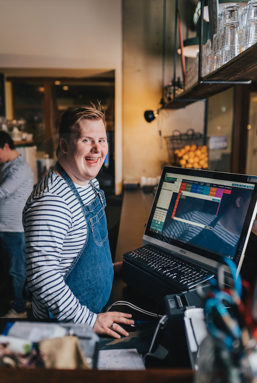 Christiaans werkt al zeven jaar bij Brownies & downieS, ooit begonnen als stagiair. Inmiddels begeleidt hij de nieuwe franchisers, en is hij (mede)verantwoordelijk voor de strategische plannen. “We groeien heel erg hard. Daarom vroegen we vier jaar geleden een gesprek aan bij Horeko, om ons te helpen bij een professionaleringsslag van de keuken. Hoe groter een keten, hoe lastiger het is om dezelfde kwaliteit te kunnen garanderen in elke zaak. Door het keukenscherm van Horeko te gebruiken wordt het werken in de keuken voor iedereen gemakkelijk en praktisch. De opmaak en recepten van de gerechten zijn eenvoudig in te zien, en ook de allergenen zijn altijd voorhanden. Dit geldt niet alleen voor het personeel met een beperking maar ook de chef-koks.”