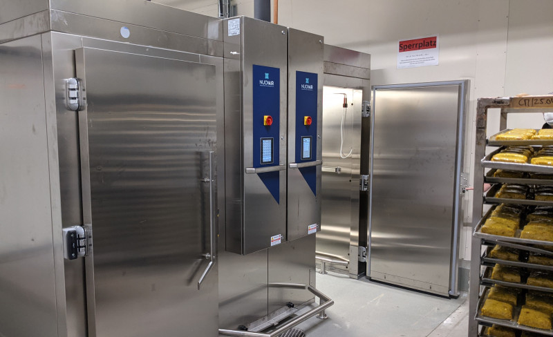 “Een blast chiller is een keukenunit die supersnel koelt door ijskoude lucht te blazen door een compartiment. Vaak gaan er net bereide maaltijden in de blast chiller – warm dus nog – die binnen no-time kunnen koelen tot minder dan 10 °C en zelfs kunnen worden ingevroren tot -40 °C. Direct na het garen verliezen veel gerechten nog veel vocht. Meteen snelkoelen stop dit proces van nagaren. Op die manier verlies je nauwelijks gewicht. Bovendien blijven ook de consistentie, kleur, smaak en het aroma van de maaltijd behouden. Zo boet je dus bij het terugkoelen – en eventueel invriezen – niet in aan kwaliteit.”