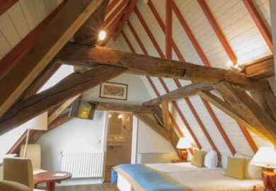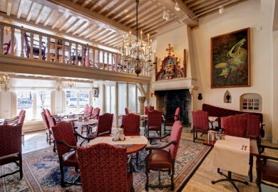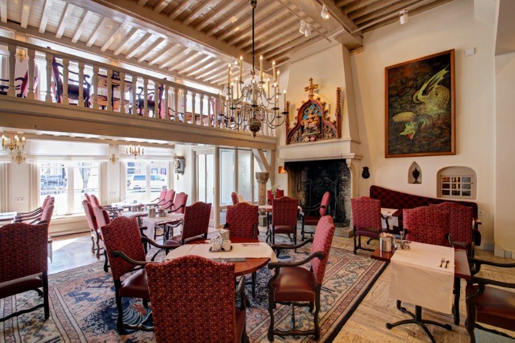 Ook op het gebied van interieur probeert De Draak bij te blijven, vertelt Schimmel. “Het is de kunst om een ambiance uit de veertiende eeuw te combineren met strakke, moderne en spannende elementen. Vroeger zag je hier vooral veel typisch Engels rood. Nu kiezen we juist voor wit en grijs in de 62 hotelkamers, maar zonder de historie van het pand uit het oog te verliezen.”