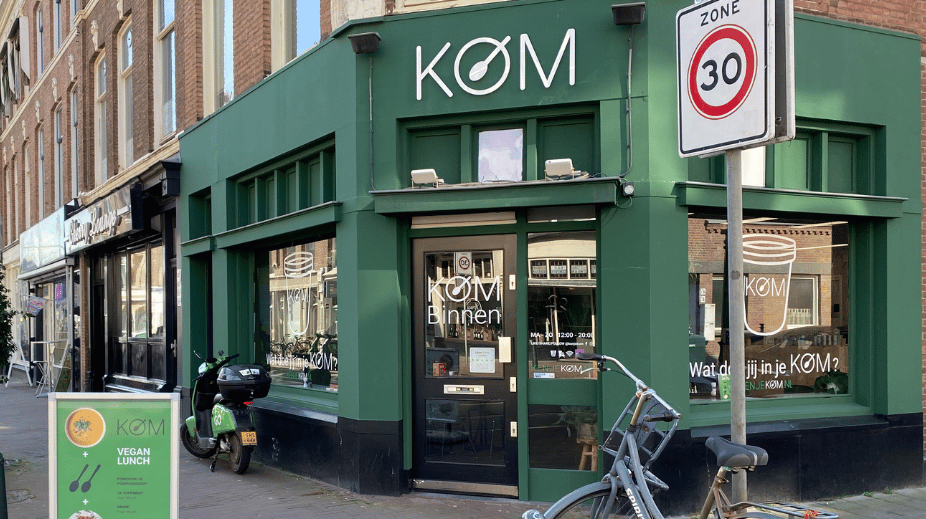 KOM biedt gezonde maaltijden aan op een duurzame manier. Dit betekent geen plastic verpakkingen en een volledig vegetarisch en overwegend plantaardig menu. Eigenaar Paco Bleeker liet destijds weten graag met zijn bedrijf groeien. "In de aankomende drie jaar willen we uitbreiden naar minimaal vijf locaties in onder andere Utrecht, Rotterdam, Den Haag, en Amsterdam." Deze strategie is veranderd: "Gebrek aan bezorgers en te krappe marges als grootste bedreiging. Nu zijn we volledig gericht op catering. We hebben een gigantische groei doorgemaakt in laatste zes maanden van 2023 en verwacht ook dit jaar weer een verdubbeling van vorig jaar."