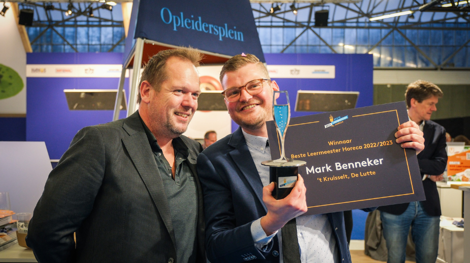 Ook leermeester Mark Benneker van ’t Kruisselt in De Lutte werd op de Horecava gehuldigd. Hij ging naar huis met de titel Beste Leermeester Horeca 2022/2023. Eshuis haalde Marks humor aan, gecombineerd met de wijze waarop hij steeds de juiste snaar weet te raken bij verschillende typen leerlingen. Dit maakt hem echt onderscheidend. Eshuis: “Mark maakt voor leerlingen het verschil tussen afhaken of doorgaan, tussen slagen of niet slagen. Niet alleen in het team van ‘t Kruisselt, maar ook landelijk. ‘t Kruisselt is een heel mooi leerbedrijf met een goed team, met Mark als een top leermeester.” De twee andere kanshebbers op de titel Beste Leermeester Horeca 2022/2023 waren Marisca Stam van ’t Voorhuys in Emmeloord en Beste Leermeester Horeca 2019/2020 Nita Huning-Koster van Het Noorden van Aalten.