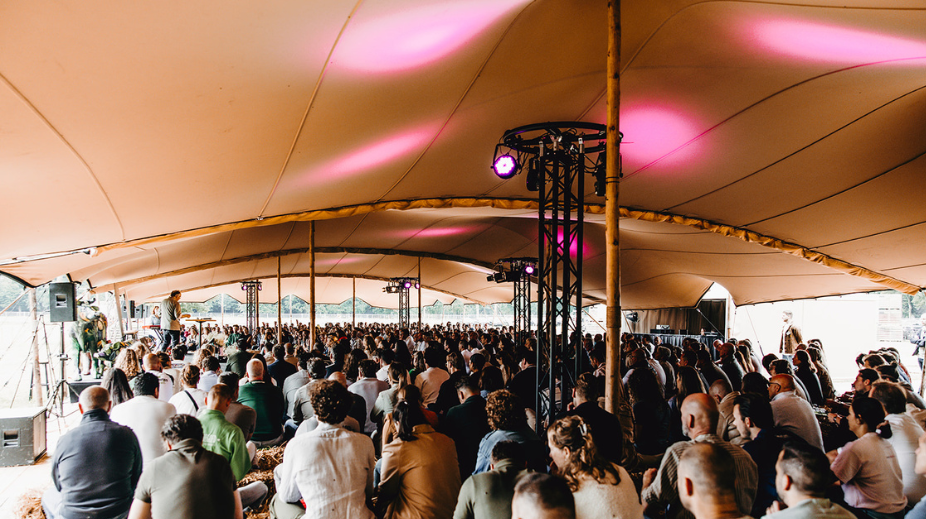 Op de boerderij van Remeker in Ede kijken honderden bezoekers uit over weilanden en koeien. In deze setting, met 86 strobalen als tribune, vindt de Food Inspiration Days Outdoor plaats. Het thema van de dag: Down to earth. Een bewust gekozen onderwerp in een tijd van razendsnelle technologische veranderingen en wereldwijde onzekerheid.