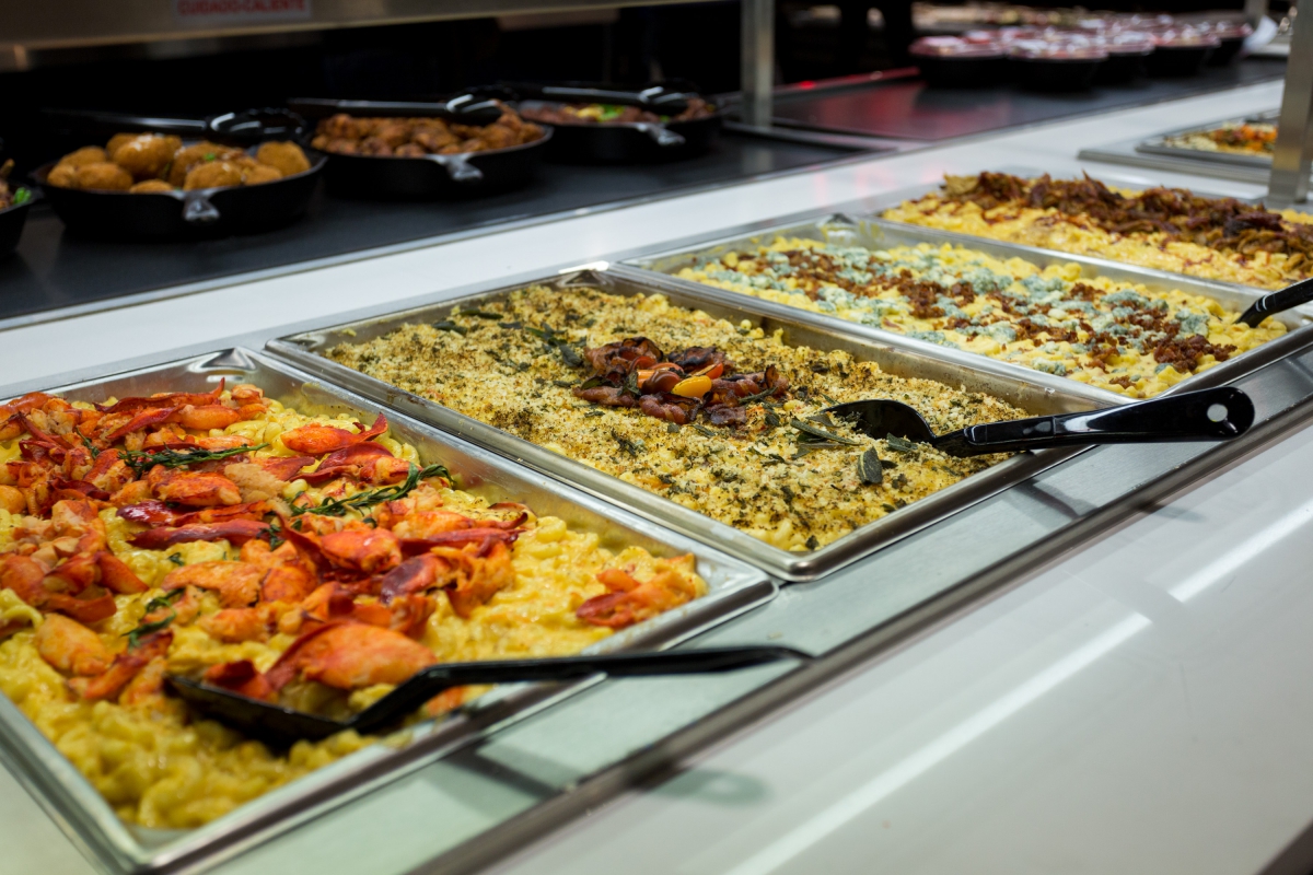 In het buitenland zien we wel meer succesvolle voorbeelden van het hybride concept. Het razendpopulaire Eataly met vestigingen wereldwijd is een van de bekendste. Je doet er boodschappen en kunt er laagdrempelig, gezellig en goed eten in meerdere Italiaanse restaurants. Het is een echte trekpleister, ook voor toeristen. Overigens werd eerder aangekondigd dat Eataly (beide foto's) ook plannen heeft voor een vestiging in Nederland. Andere voorbeelden zijn de honderden vestigingen van supermarktketens Whole Foods Market, Wegmans en Kroger in de VS, met counters waar chefs meeneemmaaltijden bereiden en grote schappen met ready-to-eatmaaltijden. Shoppers nuttigen deze maaltijden in het restaurantgedeelte.