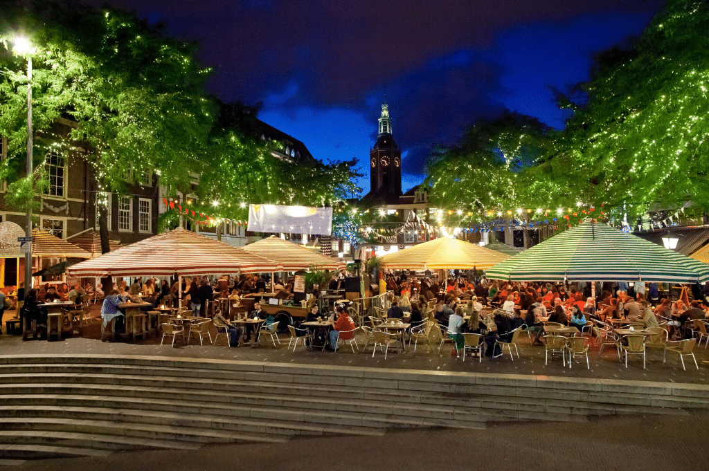 Marc Steunenberg (links) en terrassen in Den Haag (rechts)