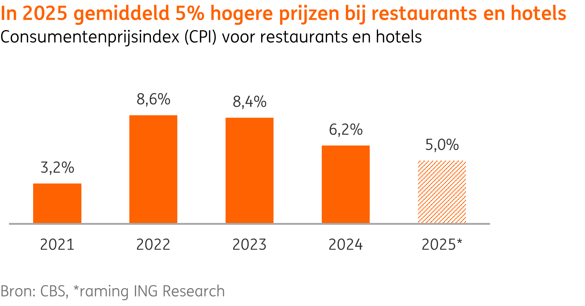 Horecaprijzen stijgen in 2025 gemiddeld met 5%