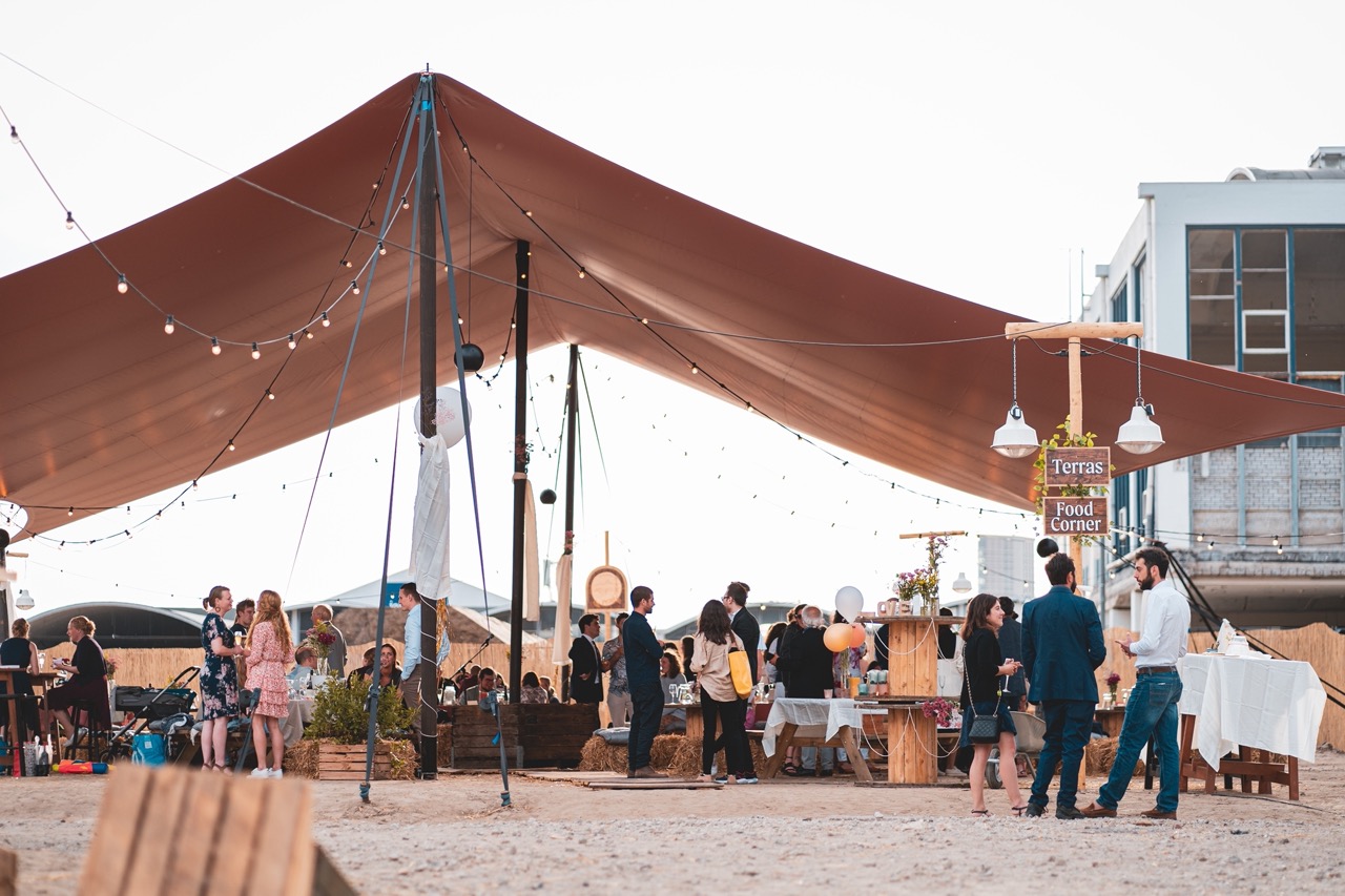 “Een pop-uplocatie waar zo’n 450 gasten in de zomermaanden in de stad, op het oude Campinaterrein, kunnen genieten van de simpele sfeer van het platteland. Denk aan lange tafels, hooibalen en een brandende barbecue. We ontvangen veel gezinnen en vriendengroepen. Voor kinderen is er allerlei vertier, zoals een trampoline en touwtrekken. Ons menu is hyperlokaal; 70 – 80% van de ingrediënten komt uit de buurt. En de bladgroenten en kruiden komen uit de urban farm die naast Stadsterras de Prairie ligt. De rest van het jaar gebruiken we die voor ons restaurant de Phood Kantine.”