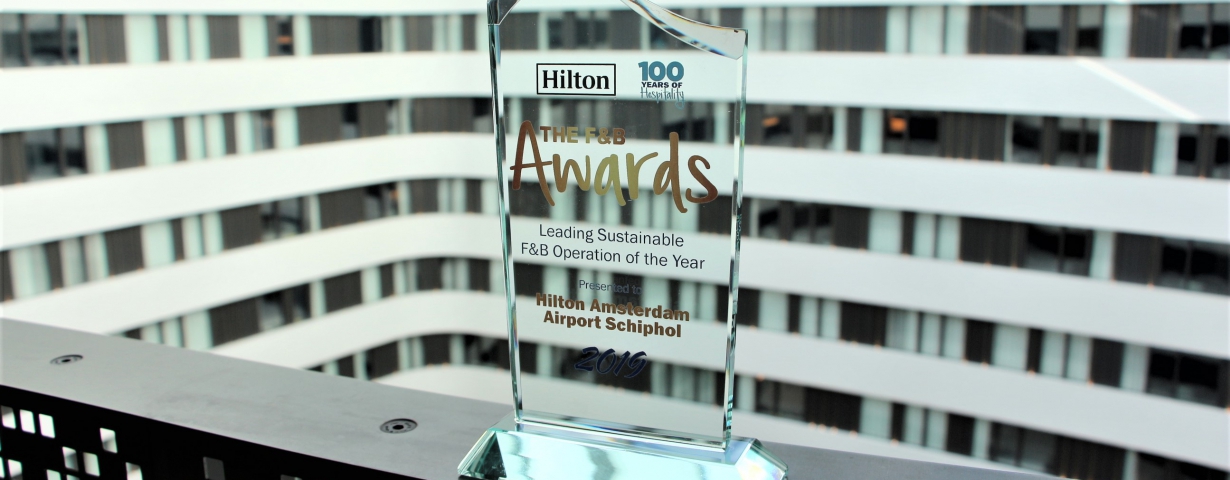 Het Hilton hotel is erkend als de meest duurzame F&B onderneming van Europa, vanwege de initiatieven die het hotel het afgelopen jaar heeft genomen om een duurzamere bedrijfsvoering te leiden in de bar, het restaurant, de evenementenafdeling en in de keuken. Hilton Amsterdam Airport Schiphol is ontzettend blij dat ze zijn onderscheiden met deze award. Anne van den Heuvel, F&B manager: “Wat een geweldige erkenning voor de duurzame initiatieven die we het afgelopen jaar hebben genomen. Ik ben erg trots op ons team en de inspanningen die ze hebben geleverd om duurzaamheid als prioriteit te stellen en nieuwe ideeën te bedenken die onze impact op het milieu beïnvloeden.” Edwin van den Heijkant, executive chef, is het daarmee eens en voegt toe: “We blijven ernaar streven om steeds duurzamer te zijn. We proberen en testen nieuwe initiatieven in de keuken om bijvoorbeeld voedselverspilling te verminderen. Voor 2020 willen we onze operationele activiteiten blijven afstemmen op de duurzaamheidsdoelstellingen van Hilton.”