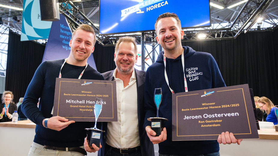 Mitchell Hendriks (Grand Hotel Huis ter Duin) en Jeroen Oosterveen (Ron Gastrobar) delen dit jaar de titel Beste Leermeester Horeca. Beide leermeesters zijn geroemd om hun persoonlijke betrokkenheid en inspirerende begeleiding.