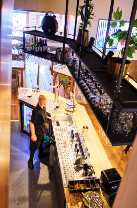 De bedoeling is dat ze een jaar lang stage lopen en dan uitvliegen of hier een betaalde baan krijgen. Bij de dagbesteding gaat het om mensen die eigenlijk geen kans op een baan hebben, maar hier wel degelijk aan het werk gaan. Gewoon zoals ieder ander in de horeca: schoonmaken, klaarzetten, lunch draaien, schoonmaken, borrel voorbereiden en zo verder. Alles onder begeleiding van vier zorgprofessionals met horeca-ervaring.”
