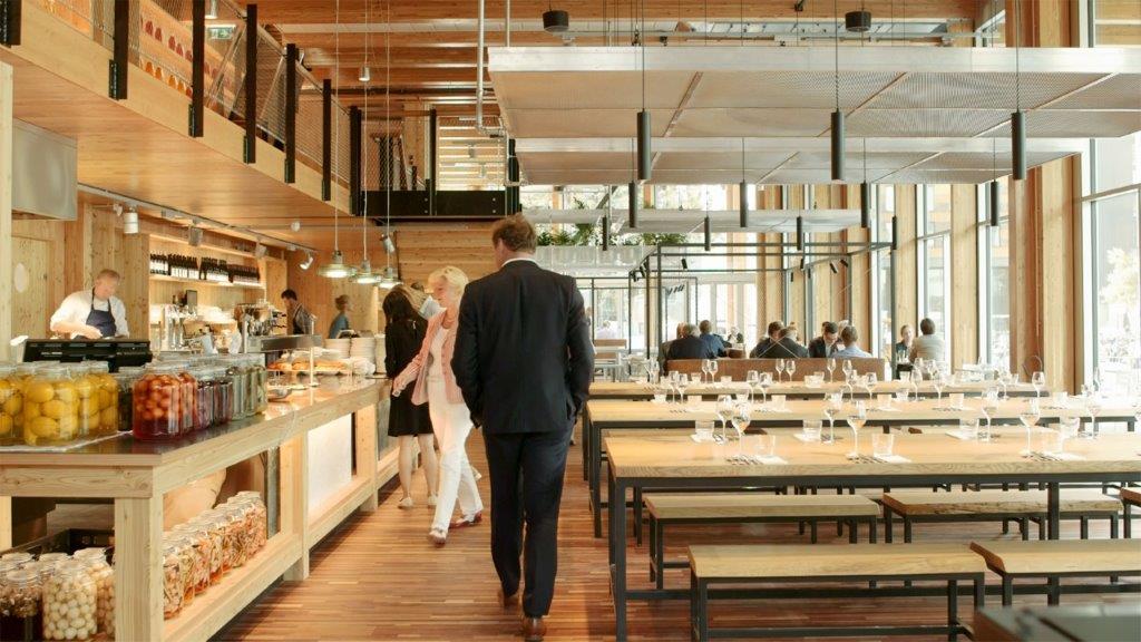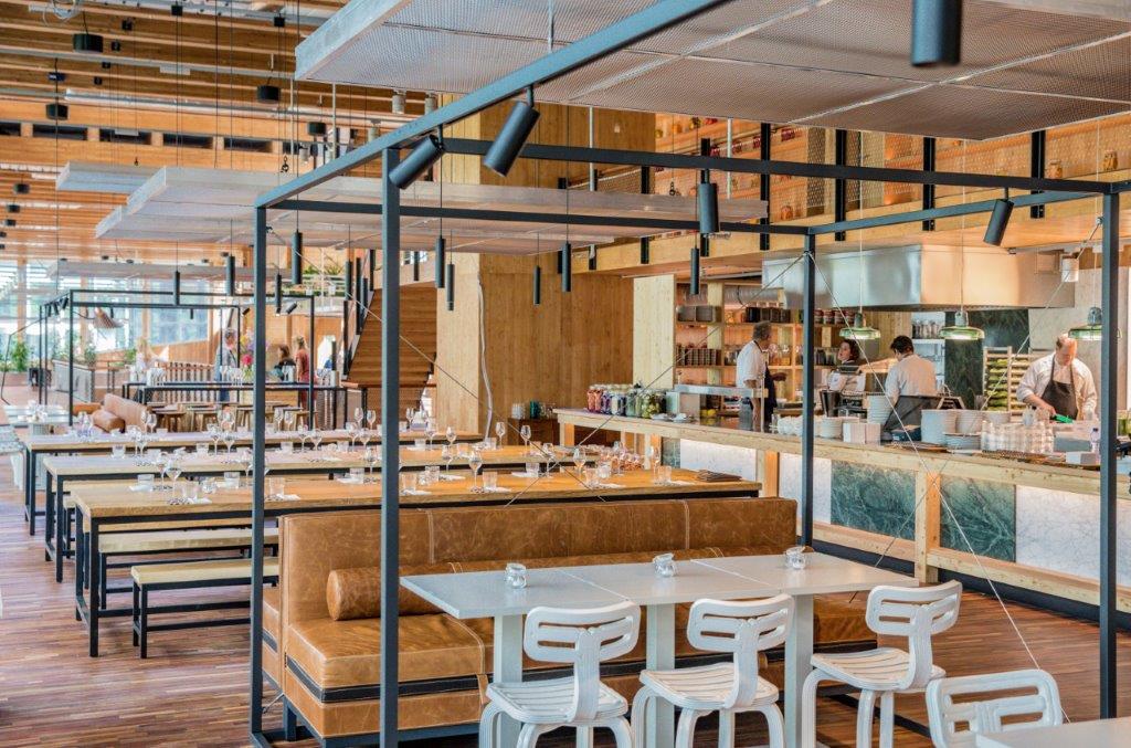 Circl implementeert deze gedachte op allerlei manieren in het bedrijf. General manager Marjan Oosting noemt wat voorbeelden: “16.000 oude spijkerbroeken fungeren als geluidsdempers, en de stoelen en tafels zijn gemaakt van volledig gerecycled plastic dat afkomstig is van oude koelkastonderdelen. Het pand wordt bovendien in de zomer en winter gekoeld of verwarmd met grondwater. Verder is de houten vloer bijvoorbeeld gemaakt van materiaal van gesloopte gebouwen.” Dan is er de keuken, waar chef Rudolf Brand de scepter zwaait. Hierover zegt hij: “Ik maak veel gebruik van bepaalde conserveertechnieken om verspilling van overgebleven groenten tegen te gaan, zoals fermenteren en wecken. Om dat laatste te doen, verwarm ik groenten in water in een glazen fles en koel ik deze vervolgens af zodat er in de pot een vacuüm ontstaat. Hierdoor kan de inhoud heel lang bewaard worden.” De glazen potten zijn overigens niet alleen nuttig: ze vormen een van de kleurrijkste eyecatchers van het interieur.
