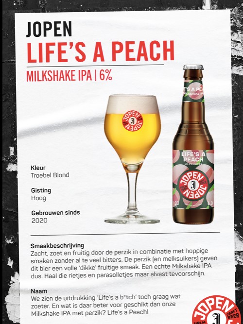 “Zacht, zoet en fruitig door de perzik in combinatie met hoppige smaken zonder al te veel bitters”, zegt de brouwerij zelf. De perzik en de melksuikers geven het bier z’n volle, fruitige smaak.