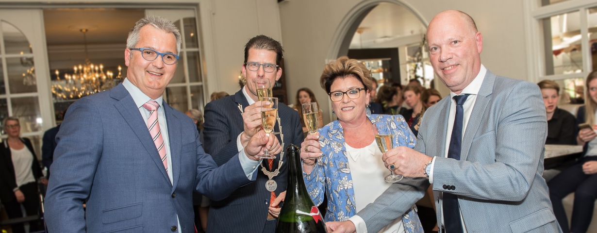 Met het sabreren van een grote fles champagne, onder toeziend oog van burgemeester Joost van Oostrum van de gemeente Berkelland en talloze gasten, werd een feestelijk jubileumjaar voor Avenarius ingezet. “Dit jaar wordt een feestjaar. Vanaf deze maand verwennen we de gasten iedere maand met een feestelijk jubileummenu. Dat wordt een jaar lang genieten”, zo verklaarde Henrike Lobbes tijdens haar welkomstwoord. Burgemeester Joost van Oostrum greep bij zijn felicitaties aan Lobbes, Olde Olthof en Labohm terug op een vuistdik gemeentelijk dossier van Hotel Avenarius. “Hotel Avenarius is sinds jaar en dag een begrip in de Achterhoek. Een naam die door de jaren heen steeds wordt geassocieerd met gastvrijheid, hoge kwaliteit en culinair genieten”, aldus de burgemeester.