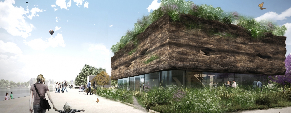 Architectenbureau DoepelStrijkers ontwierp het paviljoen volgens de principes van Nature Based Building: in het ontwerp worden natuurlijke processen nagebootst het is grotendeels gemaakt uit hernieuwbare materialen, zoals gerecycled beton versterkt met olifantengras. Food Forum weerspiegelt het leven in Flevoland: ruim vier meter onder zeeniveau. Het gebouw lijkt opgetild te zijn tot zeespiegel-niveau en is geconstrueerd uit modulaire houten elementen. De leemgevel refereert aan de vruchtbare Flevolandse bodem.