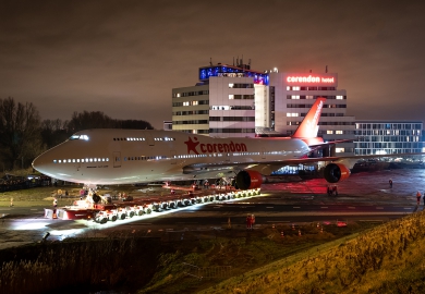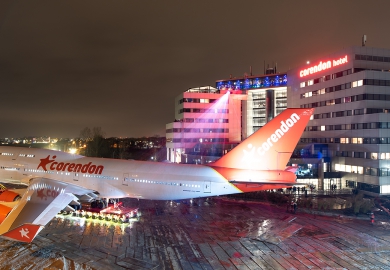 Corendon-oprichter Atilay Uslu had zelf een kamer geboekt in het hotel. Precies op de plek waar - als alles goed zou gaan - de neus van de Boeing voor het raam zou komen te staan. ,,Toen ik vanochtend de gordijnen opende, zag ik haar in volle glorie staan. Ik realiseerde me dat na maandenlange voorbereiding het ons echt is gelukt om het toestel met veel pas- en meetwerk op haar uiteindelijke plek te krijgen. Daar word je wel even stil van”, zegt hij. Corendon sprak daarna zijn dank uit voor de medewerking van de gemeente Haarlemmermeer, overheidsinstanties, diverse bedrijven en de eigen medewerkers, zonder wie de stunt nooit gelukt was.
