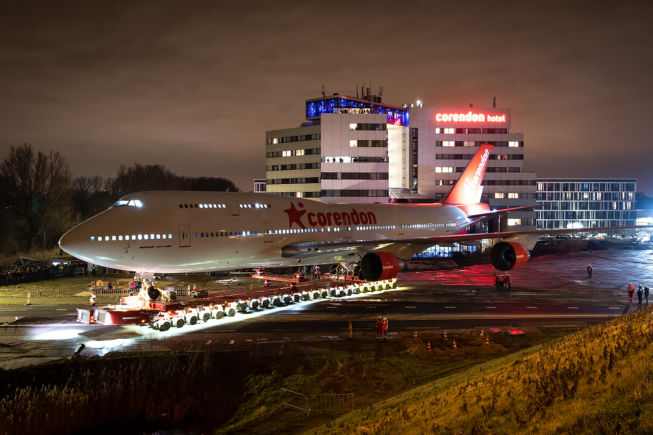 Na een vijfdaags megatransport van Schiphol naar Badhoevedorp is de Boeing 747 van Corendon vanochtend gearriveerd in de tuin van het Corendon Village hotel. Daar wordt het vliegtuig later dit jaar omgebouwd tot een 5D-experience over de 747 en de geschiedenis van de luchtvaart.