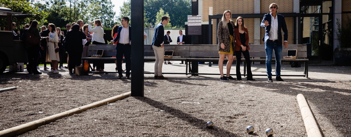 Martijn Beekhuis, General Manager Courtyard by Marriott Amsterdam Airport : "Jeu-de-boules is hip. Waar het vroeger vooral gespeeld werd op de camping en op het gazon van het bejaardentehuis, springen jeu-de-boules-banen en –bars anno 2019 als paddenstoelen uit de grond. Jong en oud verzamelen zich met veel plezier rond het jeu-de-boules-veld voor allerhande toernooitjes en eigentijdse concepten. Zo is ‘boules, beers & bites’ al bijna niet meer weg te denken uit het stadsbeeld."