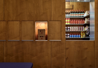 “De locatie is met een oppervlakte van minder dan 30m2 enorm compact. Dit is een bewuste keuze. Op de beperkte ruimte werd ernaar gestreefd een zeer eigen sfeer neer te zetten. Je zou het gevoel kunnen omschrijven als futuristisch, maar net zozeer authentiek en heel relaxed. Deze sfeer werd geïnspireerd door de traditionele Chinese restaurants, zoals we deze allemaal kennen. Authentieke elementen werden op een nieuwe manier geïnterpreteerd en geïmplementeerd. Nog een belangrijke feature is het klassieke luikje dat naar de voorgrond werd gebracht zodat de gast zijn order rechtstreeks vanuit de keuken ontvangt (in een box). Toekomstgericht kan dit bijvoorbeeld ook via streetside.” zegt Filip Janssen van conceptbureau Zware Jongens.