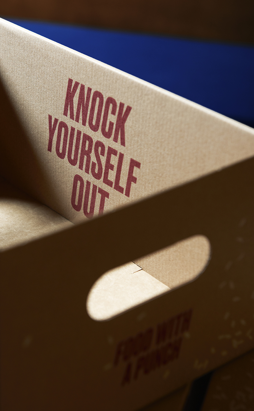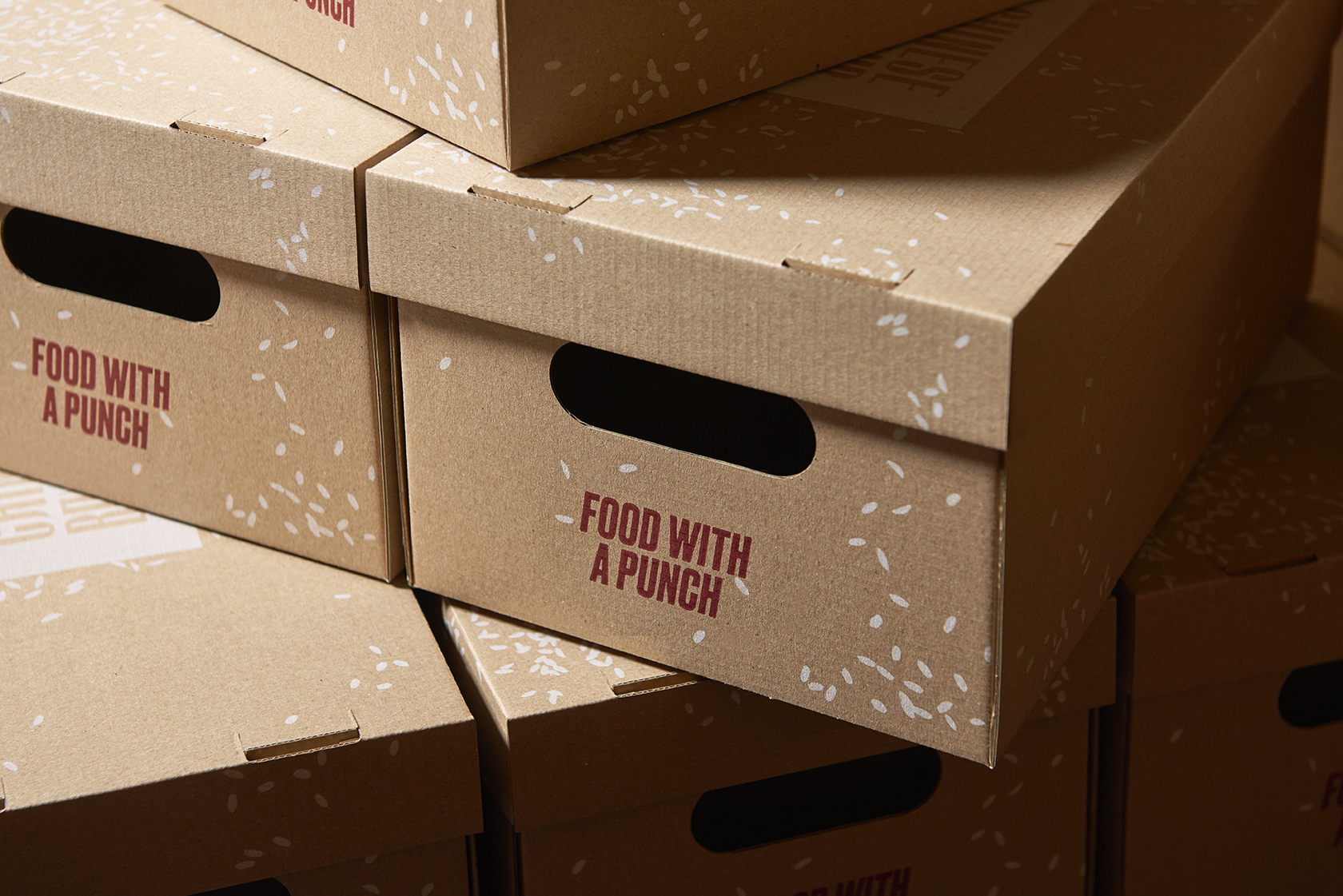Naast het injecteren van fun en functie in de totaalervaring, werd er ook een basis opgezet dewelke gerepliceerd kan worden. Met andere woorden, een modulair systeem dat straks schaalbaar is. Van naamgeving tot menu-samenstelling, tot packaging, tot de gehele ervaring en bijhorende branding. “We zijn enthousiast over deze locatie en vertrouwen erop dat andere locaties toekomstgericht zullen volgen.” aldus Lide Chung van Chinese Box Club. Jisook Park van Zware Jongens licht toe: “We hebben vanaf het begin voor een totaal andere aanpak gekozen. Dat was ook de vraag naar ons toe. Daarom werd de naamgeving, refererend naar de boxes waarin je je order ontvangt, en branding ook krachtig, herkenbaar en met een stevige punch uitgewerkt. Het logo is een authentieke blend van de Chinese letters en moderne typografie. Qua visuele taal refereren we naar explosieve elementen uit de bokssportcultuur en naar de kern van het merkidee ‘food with a punch’. Verder hebben wij onze eigen draai aan het box club concept gegeven door middel van subtiele referenties, waaronder een kleurenpalet met warme tinten rood & blauw, nummers en accenten tussen herkenbare hoekige haakjes, alsook de tegenovergestelde links-rechts uitlijning”. De klant wil zich met het take-away concept richten tot een breed publiek.