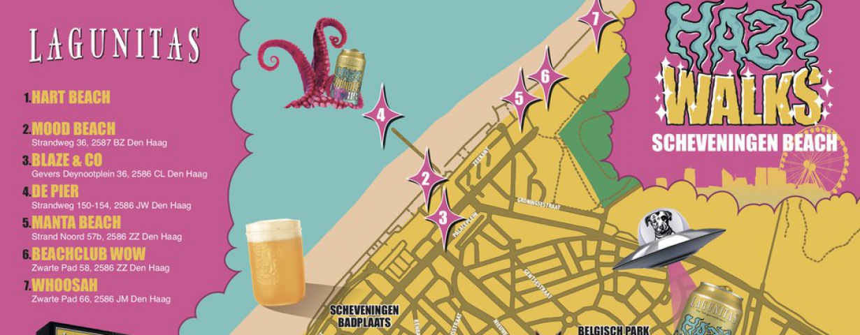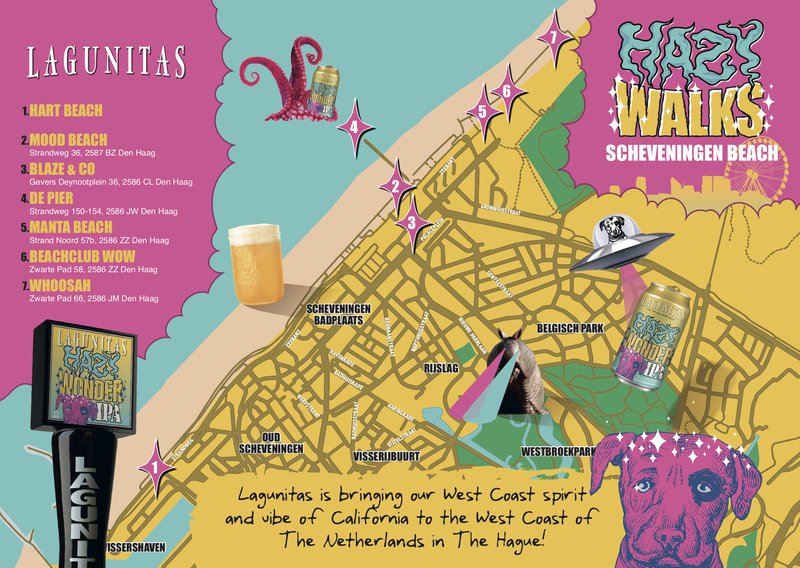 Ter introductie van de nieuwe IPA ‘Hazy Wonder’, introduceert Lagunitas de Hazy Walks. Drie insider (wandel)routes in ‘het Californië van Nederland: Den Haag/Scheveningen’, zo meldt Heinken. De Hazy Walks zijn samengesteld door lokale helden Trobbies, Nienke Lit en Pat Smith.