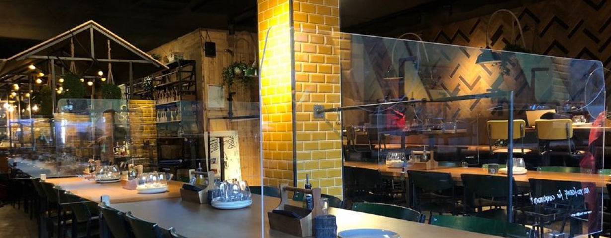 Pesca, Theatre of Fish, het met de Entree Award ‘Best Hospitality Concept’ bekroonde restaurant aan de Rozengracht in Amsterdam, vond in deze uitdagende tijden snel een oplossing om de gasten weer een veilig gevoel te geven. De oplossing kwam van het op-maat-maken van standaard schermen uit het aanbod van The Social Screen. Om de lange tafels flexibel op te delen werd de D-Screen tafelklem met een zware magneetverbinding uitgevoerd zodat de schermen eenvoudig heen en weer geschoven kunnen worden, en de losse ronde tafels worden gescheiden door elegante S-Screens.