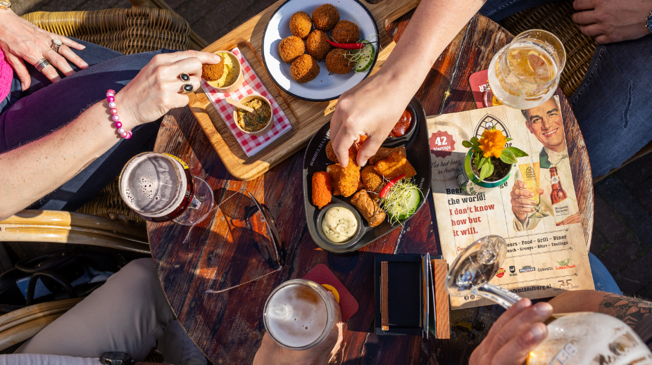 Om gasten langer te laten blijven bij mooi weer, plaatste Herrijgers een speeltoestel naast het terras. "Een echte tip als je de ruimte hebt. Families blijven langer zitten, kinderen spelen en ouders genieten. Ze bestellen vaak snacks en drankjes aan de toonbank. We geven een elektronisch oproepsysteem mee, zodat ze zelf hun bestelling ophalen wanneer die klaar is. Werkt perfect!". Funk heeft bediening op zijn terras en zijn bitterballen van De Bourgondiër zijn het hele jaar door favoriet.