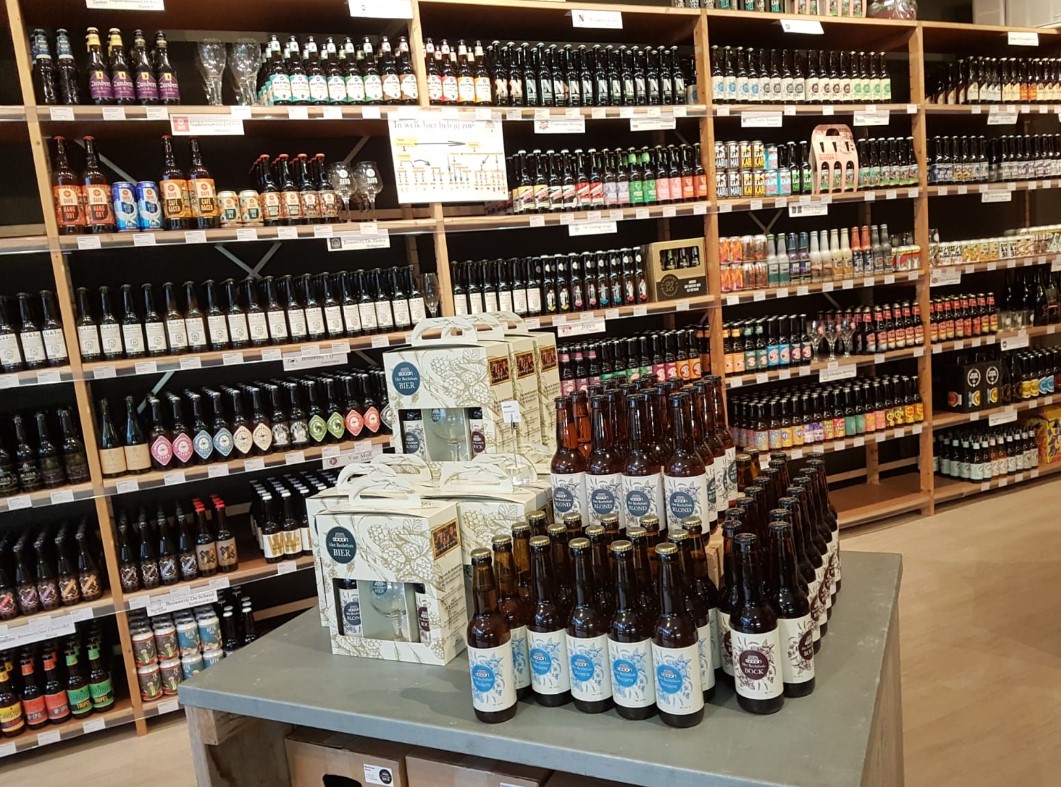 Het bieraanbod in de 'plop-up' winkel van Het Rechthuis