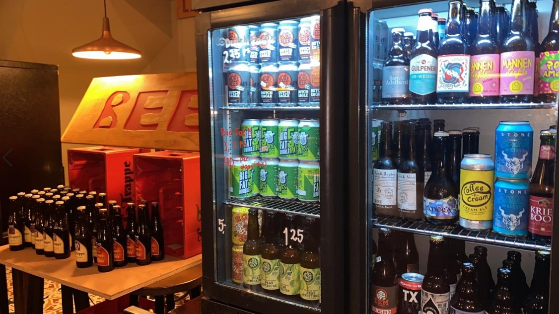 Peter van der Arend had met Craft & Draft, vlakbij het Vondelpark in Amsterdam een combinatie van winkel en café, maar stopte per 1 januari dit jaar met de winkelfunctie omdat het café prima liep, maar de winkel niet. “Er was te weinig belangstelling. We verkochten growlers met het idee dat mensen die zouden laten vullen en dan het Vondelpark in zouden gaan om ze met elkaar leeg te drinken. Maar die van een liter werden nauwelijks verkocht. Nederlanders zijn kennelijk niet van het delen. Craft ‘n Draft vervult een prachtige functie als buurtcafé, dus we gingen als café verder. Maar ik heb wel een winkelbestemmimg op het pand. Bij de eerste lockdown hebben we alle voorraden van mijn vier cafés verkocht tegen inkoopprijs met een kleine opslag. We hebben veel bieren die je vers moet drinken, dus de voorraad moest weg. Mensen konden bestellen en hun bier afhalen bij het Arendsnest. We hebben toen ook Beer Temple verbouwd. Nu we weer een horecasluiting hebben, heb ik een opnieuw een winkel geopend in Craft & Draft.”