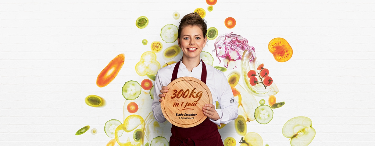 Estée Strooker van restaurant ’t Amusement in Arnhem gaat hier ook mee aan de slag. En heeft als doel om maar liefst 300 kg te verminderen binnen een jaar. Zij roept in een video haar collega’s op om haar voorbeeld te volgen.