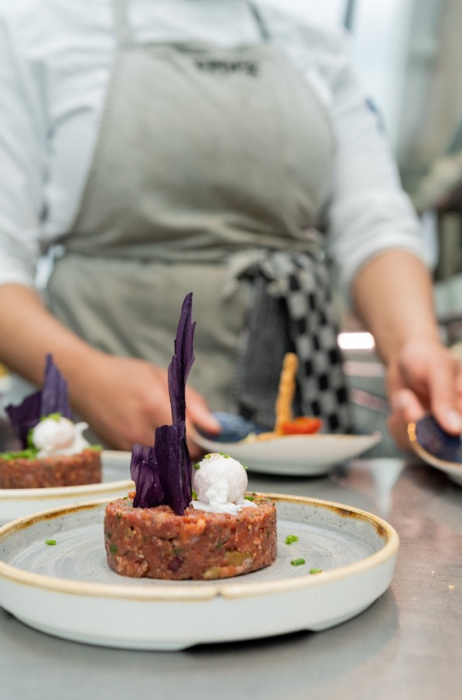 Ook onderhoudt Vroeg nauwe banden met lokale leveranciers en boeren. Dit persoonlijke contact draagt niet alleen bij aan de plaatselijke economie, maar is ook terug te zien aan de biodiversiteit op het bord. “We kijken steeds vaker naar producten die normaal van ver komen, maar die ook hier verkrijgbaar zijn. Zo halen we nu mozzarella van boeren uit de buurt en gebruiken we Hollandse soja,” aldus Wennink.