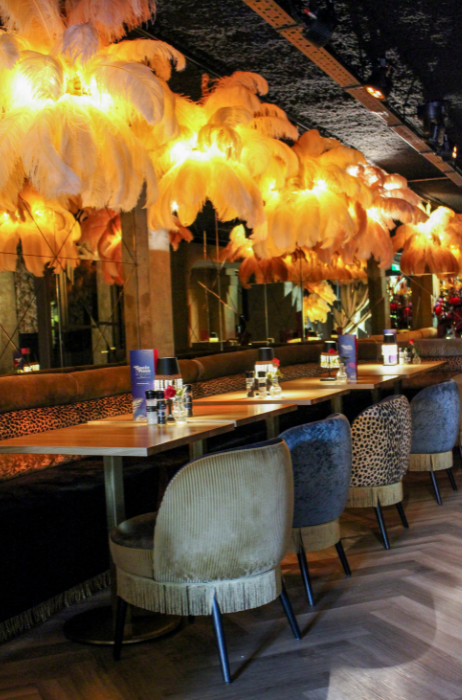 Het oude Jordanese interieur werd in een nieuw jasje gestoken. De barkrukken zijn bekleed met een kek tijgerprintje, op de muren zijn opvallende bloemstukken bevestigd en aan het plafond hangen grote veren lampen. “Ook veranderden we de kaart”, zegt Post. “We bieden shared dining-gerechten aan, zorgen voor dinnershows en flamberen gerechten aan tafel. Daarnaast is er livemuziek met zowel bekende als onbekende artiesten. We maken er echt een feestje van voor gasten.”