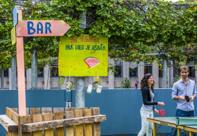 Dat de populariteit van spel inderdaad groot is, weet Fense Berkhof ook. Hij is één van de oprichters van DÂK, dat vier zomers lang te vinden was een Rotterdamse parkeergarage. Ondanks dat het vorig jaar geen doorgang kon vinden, laat Berkhof weten dat het concept dit jaar waarschijnlijk wél doorgaat. Op dit terras, al noemt hij het liever een stadspark, zijn de tafeltennistafels, jeu-de-boulesbanen en hoepels een schot in de roos onder (volwassen) gasten.